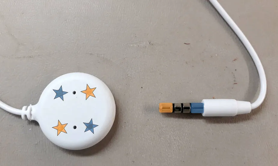 Section titled “Probe Connection”Since the probe comes with an integrated 3.5mm male plug, a 3.5mm female jack has been connected to the Grove port to allow easy probe replacement in the future. Orange connects to orange, blue connects to blue. The pads on the opposite side of the probe are internally-connected identically to the front. The two middle rings on the 3.5mm jack are unused. There is no polarity — simply connect one terminal (orange or blue) to Grove GND, and the other to Grove G33.